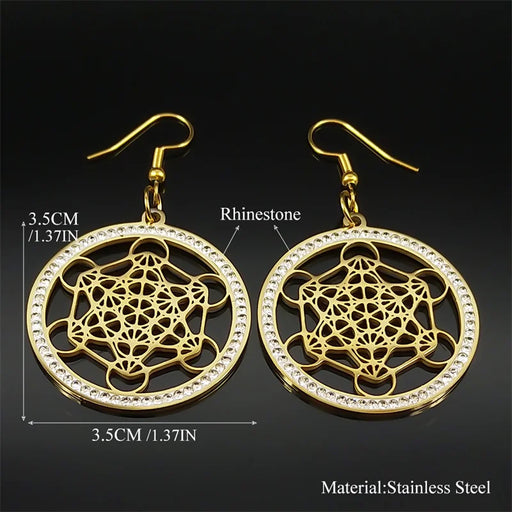 Healing Arts CenterIn stockMysterious Metatron Cube Flower of Life Drop Earrings for Women Stainless Steel Gold Color Sacred Geometry Earring Jewelry Style:Mysterious ...